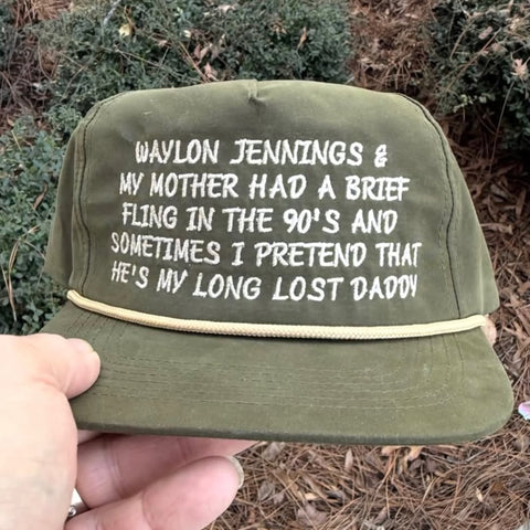 Waylon Jennings and My Mother Had a Brief Fling Embroidered on a Rope SnapBack Hat Cap